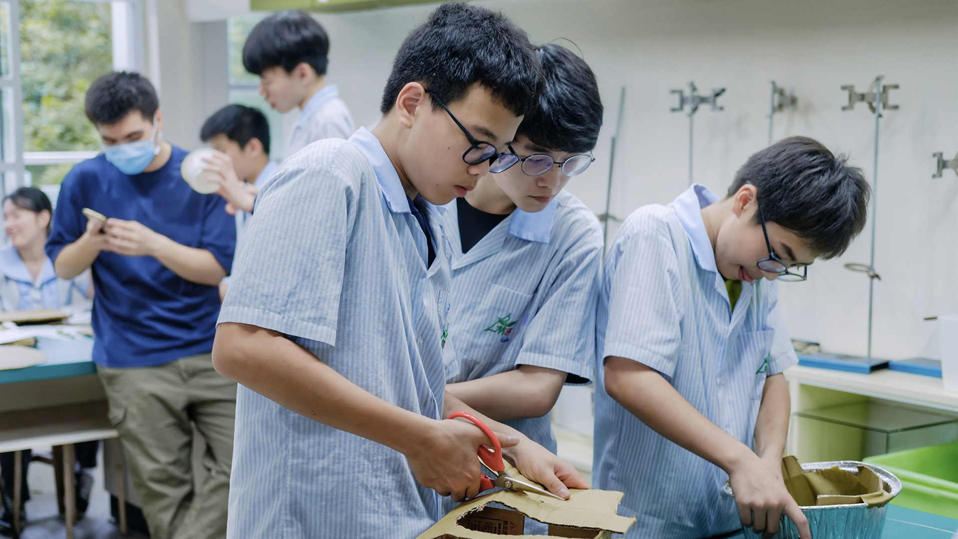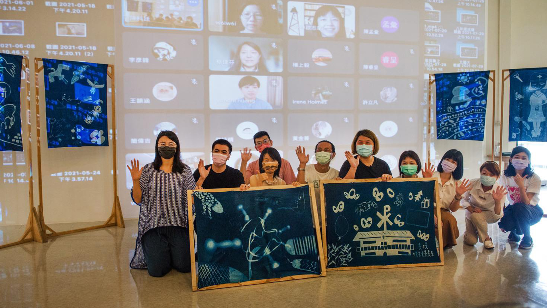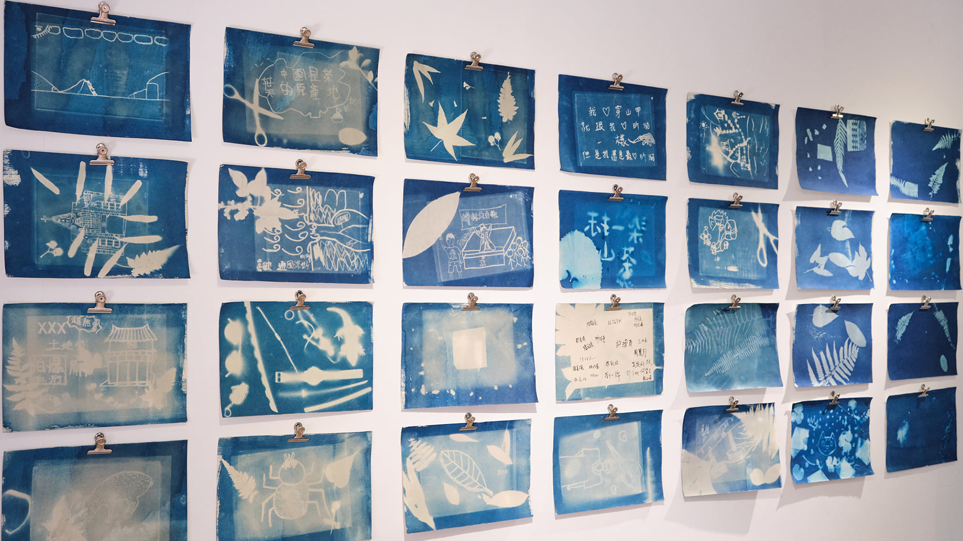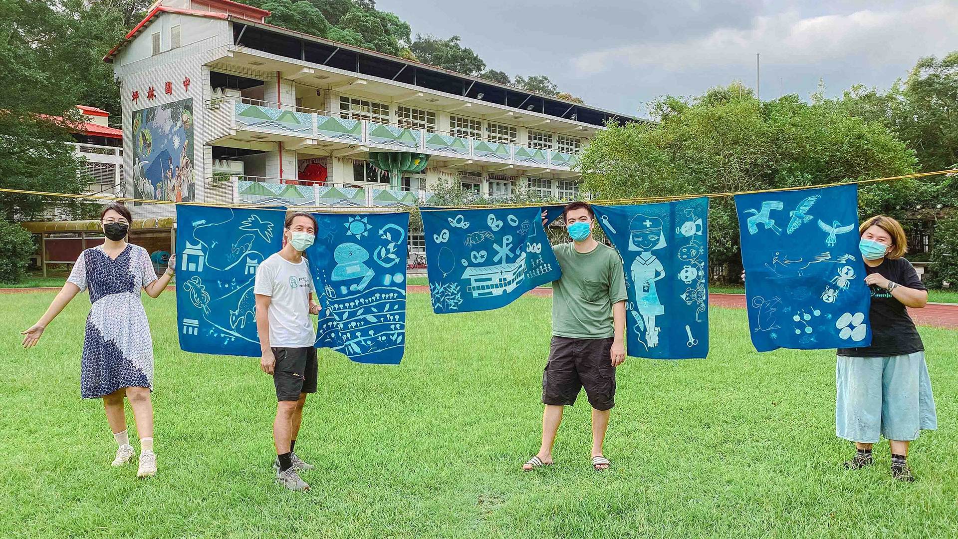 「染一抹茶山」計畫當中,坪林實中學生在參觀坪林茶業博物館的「茶山學」展覽後,從資料收集進入藍曬技法學習與零件製作,由在地議題衍伸創作出六大主題地方故事布簾,包含呈現專業製茶流程的「一杯好茶的幸福」、帶大家看見豐沛在地生態資源的「生活在坪林的鳥兒」及「幸福的穿山甲」、探討宗教興衰的「消失的傳說—坪林天主教」、解密人文歷史之路「逐漸轉化的淡蘭古道」,以及介紹坪林傳奇助產士蔡巧的「掌握坪林生命的阿嬤」。